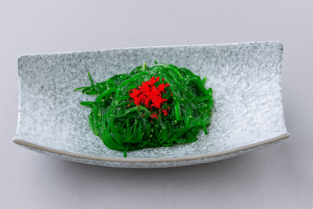 Морская чука с ореховым соусом и красной икрой тобико. Настоящий хит японской кухни.