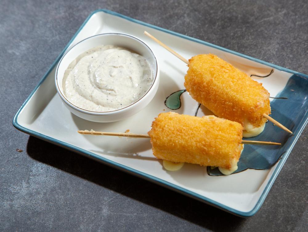 Тягучая моцарелла в тонкой хрустящей шубке, под домашним чесночным сливочно-сырным соусом. Сырный комфорт-фуд в японском ритме.
